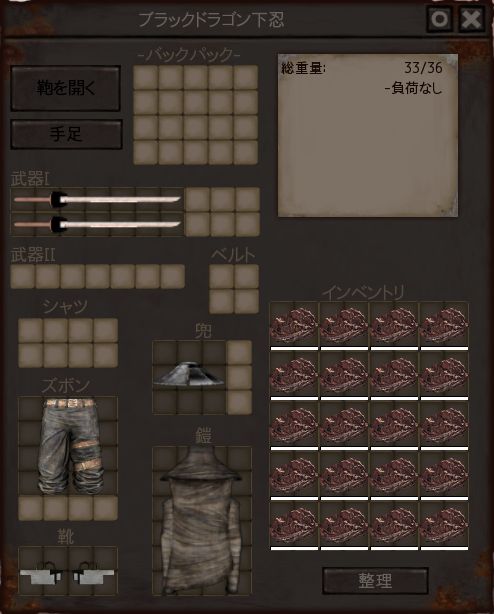 ブラックドラゴンニンジャは1人につき、2本の忍者刀が剥ぎ取れます。忍者刀の重さは0kgと表示されているので、バックパックに限界まで積み込んでしまいがちです。しかし、バックパックに大量に詰め込んだ忍者刀は重さが発生するので、知らずのうちに走る速度が遅くなっている場合があります。
