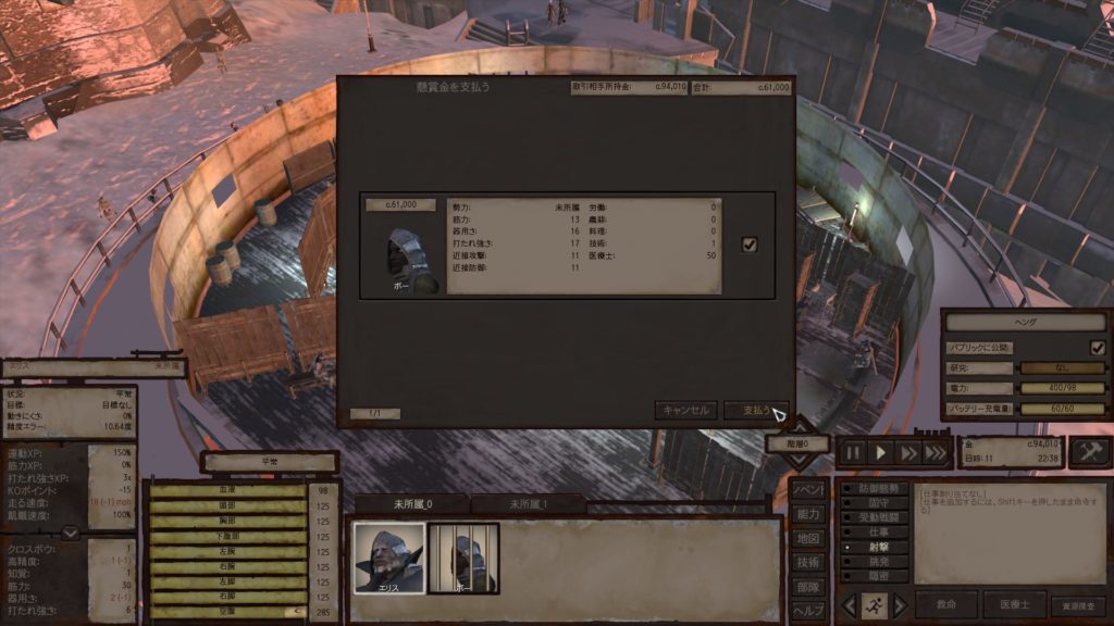ボーが檻の中に入ったら、すぐに憲兵隊長を右クリック長押し >「話をする」からボーの懸賞金の倍額を支払うとボーが解放されます。この時、なぜか新しい部隊が作成されてボーがその部隊に移動するので、「部隊」からボーのアイコンをドラッグアンドドロップして元の部隊に移動させましょう。