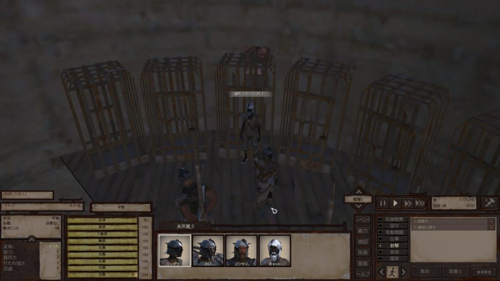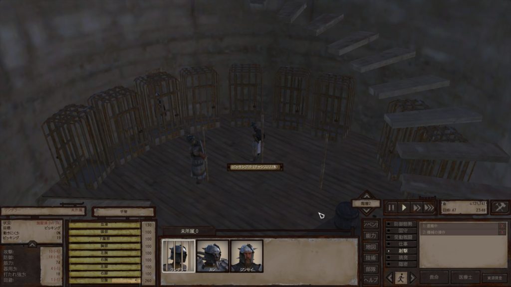 囚人用ポールに入ったキャラクターは攻撃されなくなるので、後は傭兵とダスト盗賊の戦いが始まります。囚人用ポールに入ったキャラクターはすぐにピッキングして脱出の準備だけしておきます。