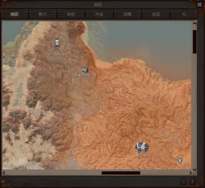 キャラクター設定後はショーバタイの東、砂漠の真ん中にいる状態でスタートします。開始したらすぐにスペースキーを押して一時停止します。